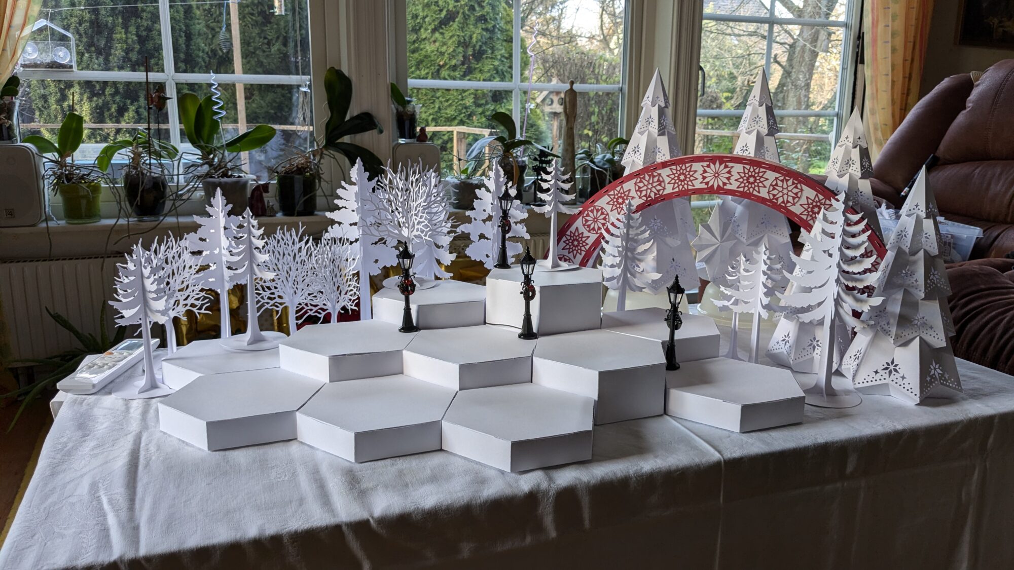 Materialbedarf: für die beiden größeren Bäume je 2 Bögen DIN A4, für den kleineren Baum 1 Bogen DIN A4