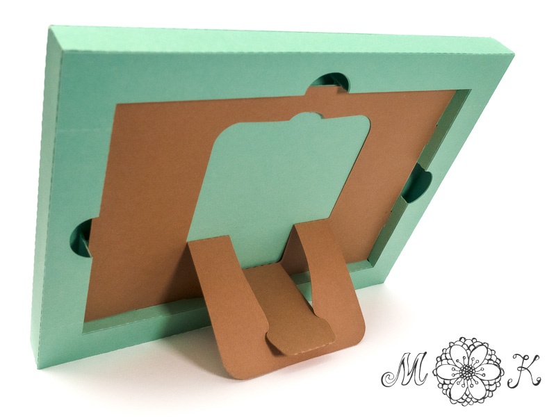 Im Download sind drei Rückseiten-Optionen enthalten, sodass der Rahmen stehend (quer oder hoch) und auch hängend verwendet werden kann. Der Bilderrahmen-Ständer, der in der Rückwand integriert ist, kann zusammengeklappt werden.
