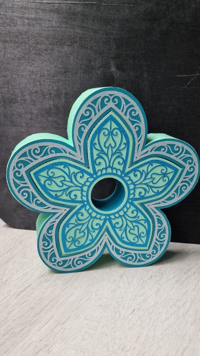 Die Blume ist für eine Höhe von 17 cm, eine Breite von 17,6 cm und eine Tiefe von 3,5 cm konzipiert.