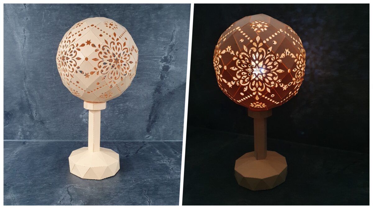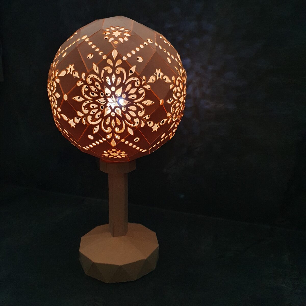 Die Kugel mit Sterndekor ist für folgende Maße konzipiert: Durchmesser: ca. 13,9 cm (122,1 % im Vergleich zum Basis-Projekt).