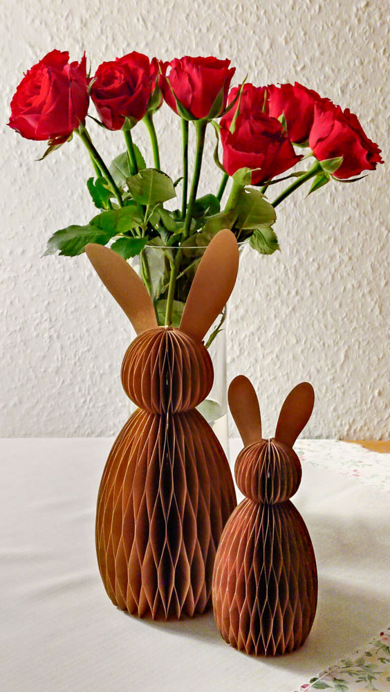 Der Waben-Hase wurde für einen Durchmesser von 7 cm und eine Höhe von 13,7 cm entwickelt (zzgl. Ohren).