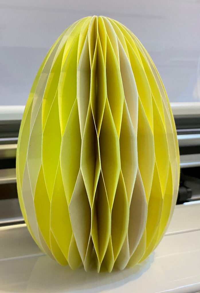 Das Waben-Osterei wurde für einen Durchmesser von 7 cm und eine Höhe von 10 cm entwickelt.