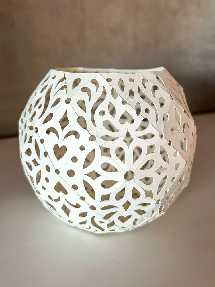 Das Windlicht wurde für folgende Maße konzipiert: Durchmesser: ca. 13 cm | Höhe: ca. 10,5 cm | Durchmesser Öffnung: ca. 7,3 cm