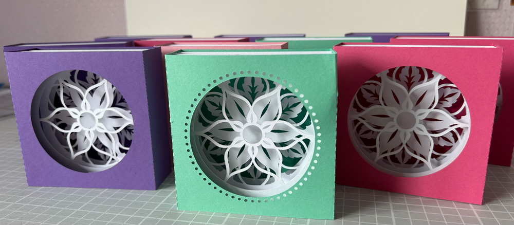 Meine Mini-Tunnelkarten sind 9,2 cm x 9,2 cm groß. Natürlich sind die Motive nicht einfach nur verkleinert, sondern so angepasst, dass sie in diesem kleineren Format gut zu plotten sind.