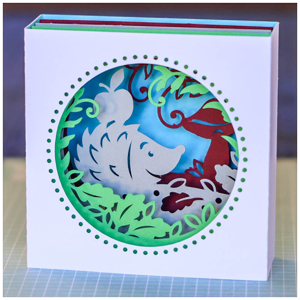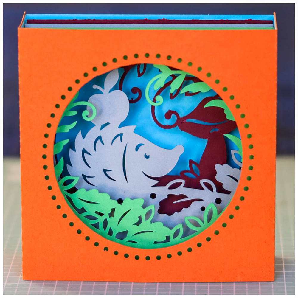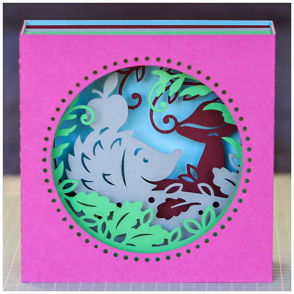 Der Download enthält alle Teile für den äußeren Rahmen inkl. Stecksystem zum kleberfreien Befestigen der inneren Motiv-Lagen. Hierfür muss das Mini-Tunnelkarten-Motiv auf die Formen der Klapp-Karten Erweiterung übertragen werden. Wie das genau funktioniert, erkläre ich dir in einem Anleitungsvideo in Silhouette Studio, in Canvas Workspace (lokal installiert) für Brother und im Cricut Design Space.