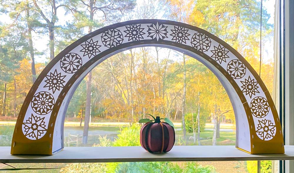 In der A4-Version ist der Lichterbogen komplett klebefrei. Alle Verbindungen werden nur gesteckt.