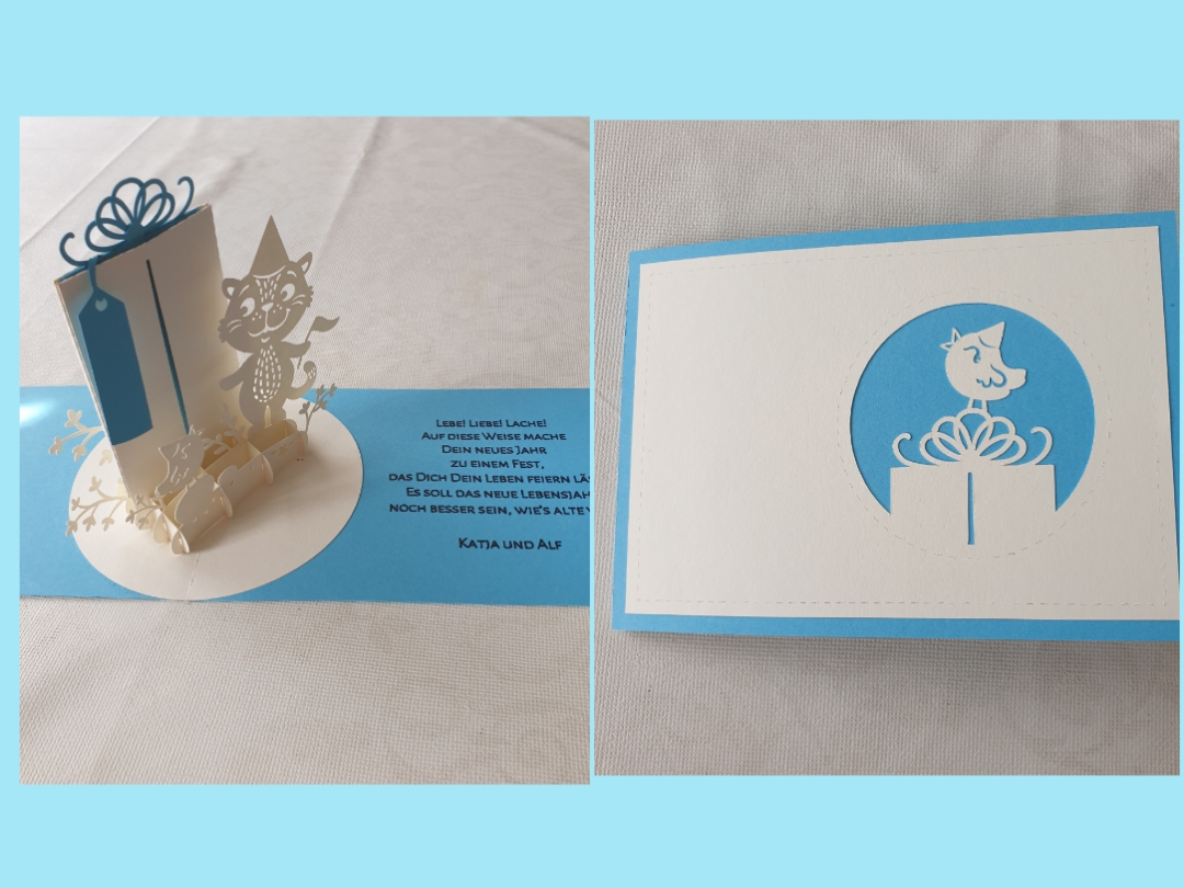 Plotterdatei Pop-up-Karte Party (Katze)