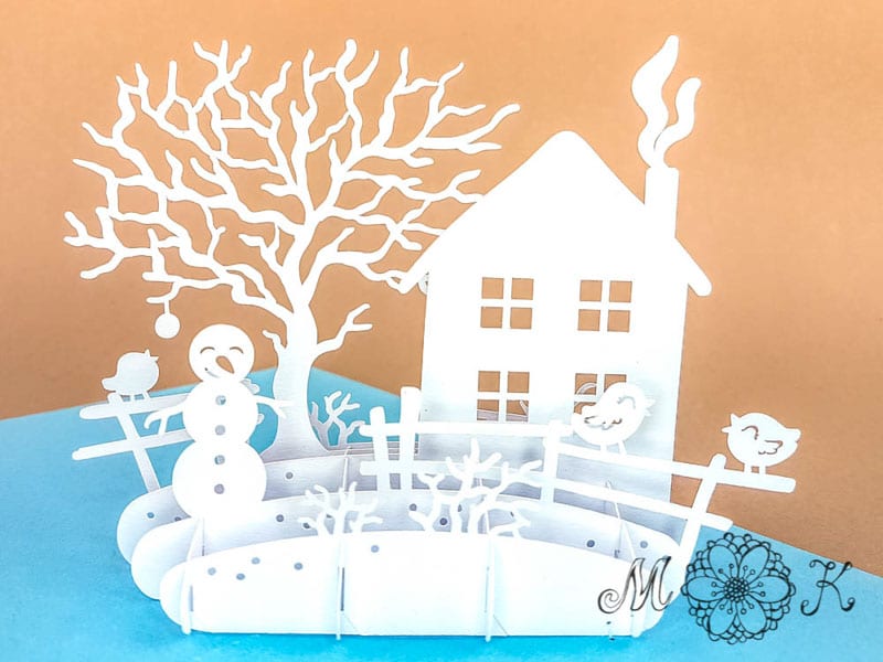 Beim Öffnen dieser Pop-up-Karte stellt sich eine wunderschöne Winterszene auf.